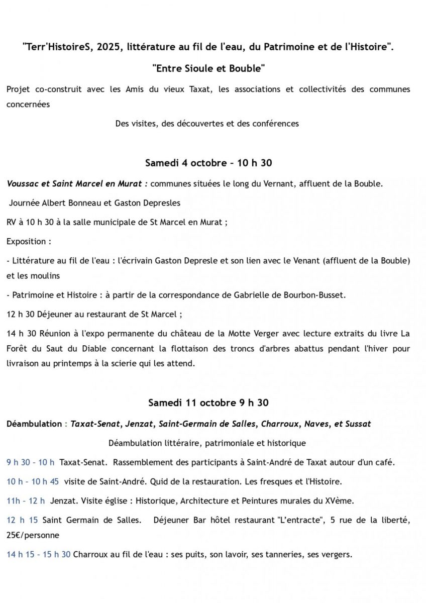 Val de Sioule Terr'HistoireS 2025 : littérature, patrimoine et histoire au fil de l'eau - Conférences et rencontres The 12 December 2025 Taxat-Senat