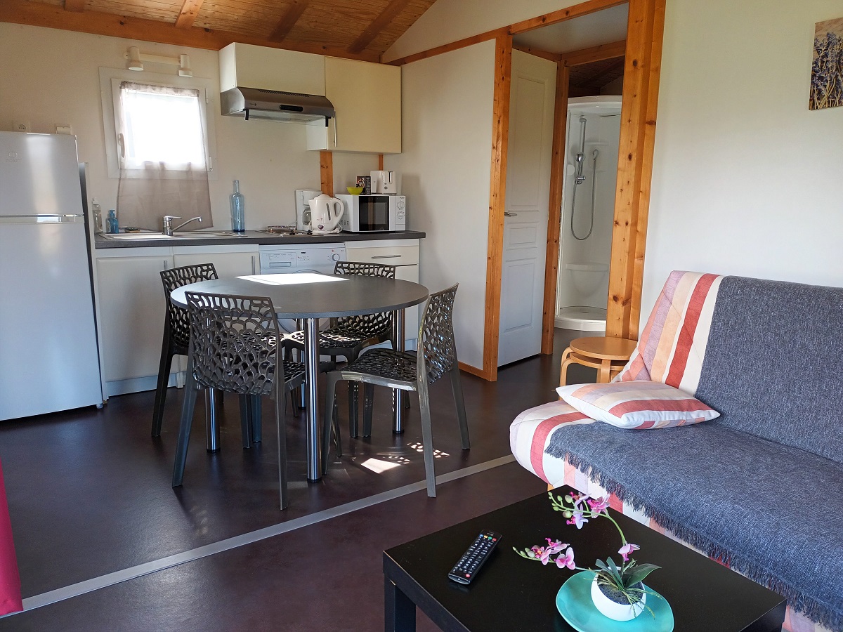 fully-equipped chalets with oven, washing machine, fridge, freezer, etc.