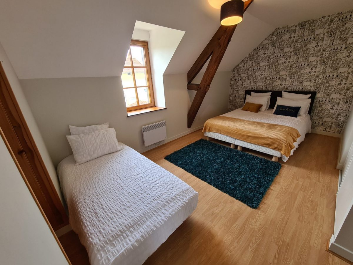 1 bedroom with 2 80x200 beds pushed together or not and an additional 90x190 bed.