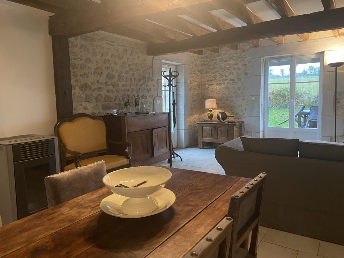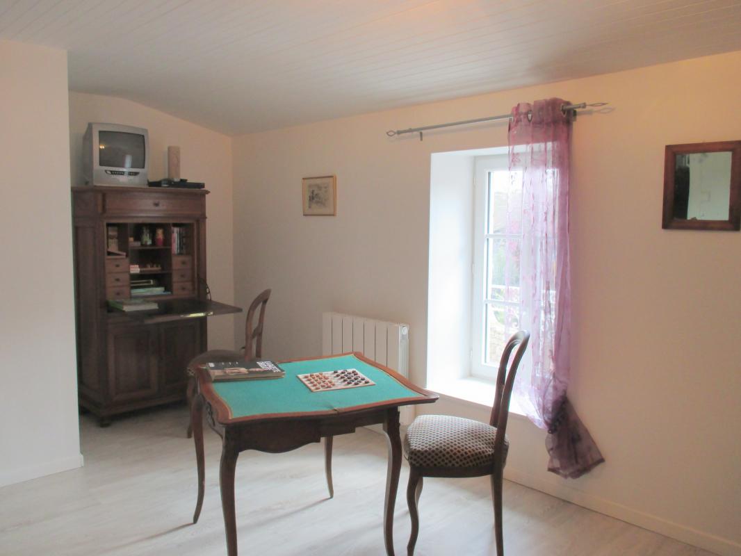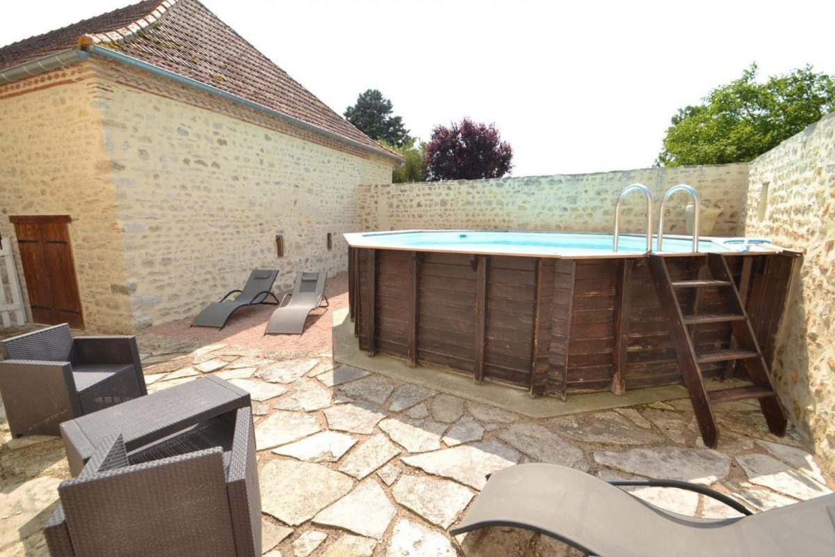 In a small village, this former independent Bourbonnais farmhouse completely renovated with authenticity (beams and stonework) and contemporary harmony. DRC/floor: Living room, kitchen, woodstove, 1 bedroom (1 bed 160 x 200 cm), private shower room, wc. Floor: 1 bedroom (1 bed 160 x 200 cm), private bath room, 1 bedroom 2 beds 90 x 200), bathroom, wc, 1 bathroom games library (1 bed 80 x 180). Bo. Electric. Tel. courtyard patio with swimming pool above ground sans vis à vis close walls. Ground on the back of the House with terrace, lawn with views of the hills. Festival of Gannat in July August.