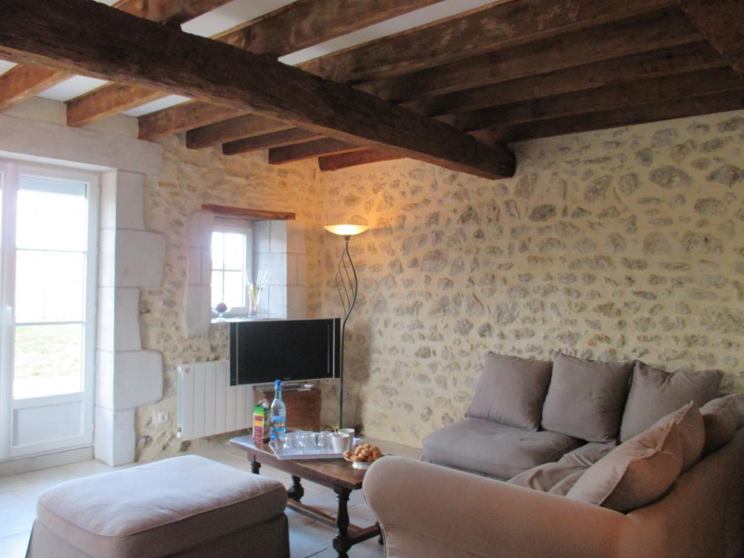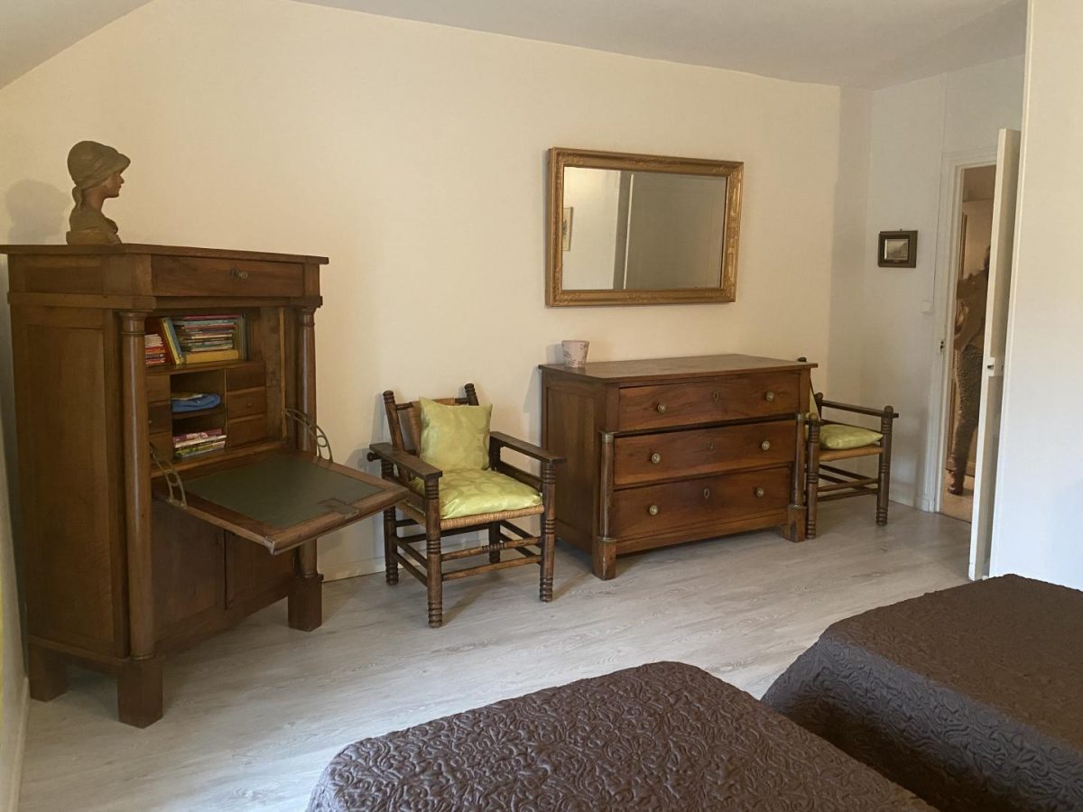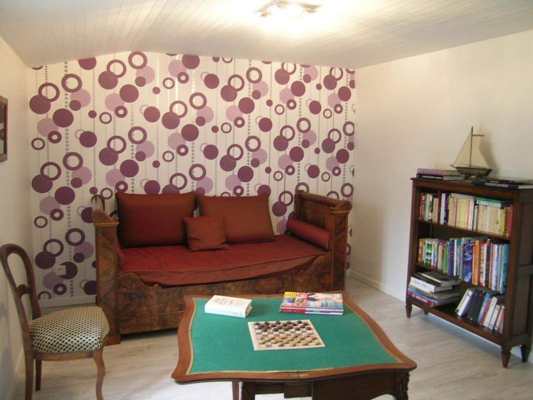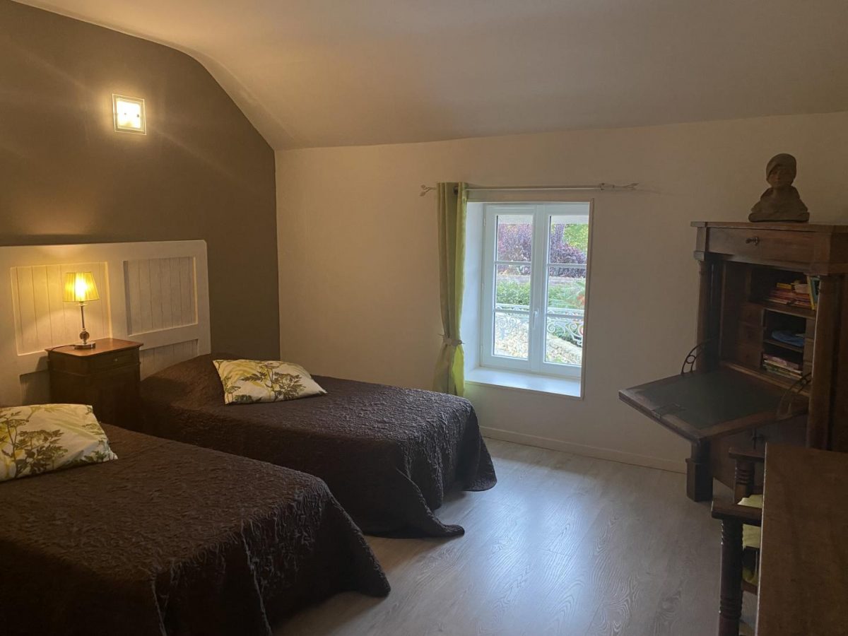 In a small village, this former independent Bourbonnais farmhouse completely renovated with authenticity (beams and stonework) and contemporary harmony. DRC/floor: Living room, kitchen, woodstove, 1 bedroom (1 bed 160 x 200 cm), private shower room, wc. Floor: 1 bedroom (1 bed 160 x 200 cm), private bath room, 1 bedroom 2 beds 90 x 200), bathroom, wc, 1 bathroom games library (1 bed 80 x 180). Bo. Electric. Tel. courtyard patio with swimming pool above ground sans vis à vis close walls. Ground on the back of the House with terrace, lawn with views of the hills. Festival of Gannat in July August.