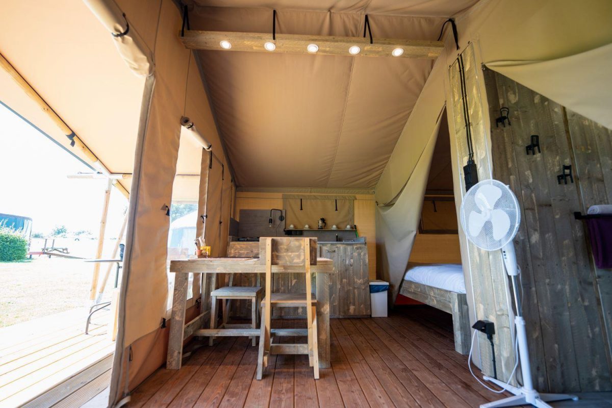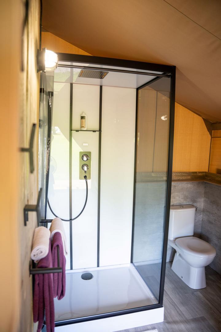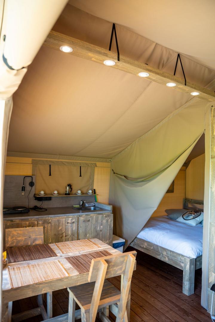 Blankets, duvets and pillows are provided as well as towels with tea towels for the kitchen and the bed is made upon your arrival. The kitchen is equipped with everything you need to cook homemade meals as a couple: refrigerator, electric hob, microwave, coffee maker, kettle, toaster, cutlery, etc. The Safari Lodge is equipped with a bathroom with WC. On the outdoor terrace, you will benefit from an indoor-outdoor living space and will appreciate the freshness of the air in the evening during your breaks.