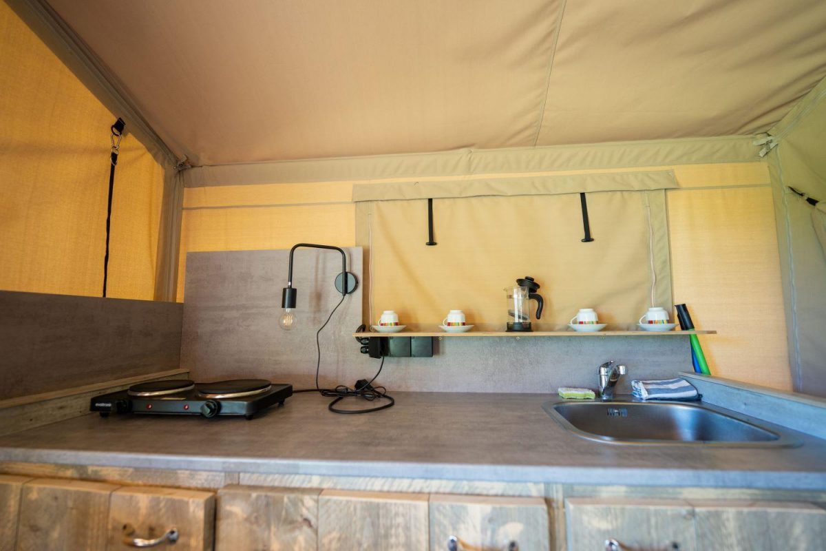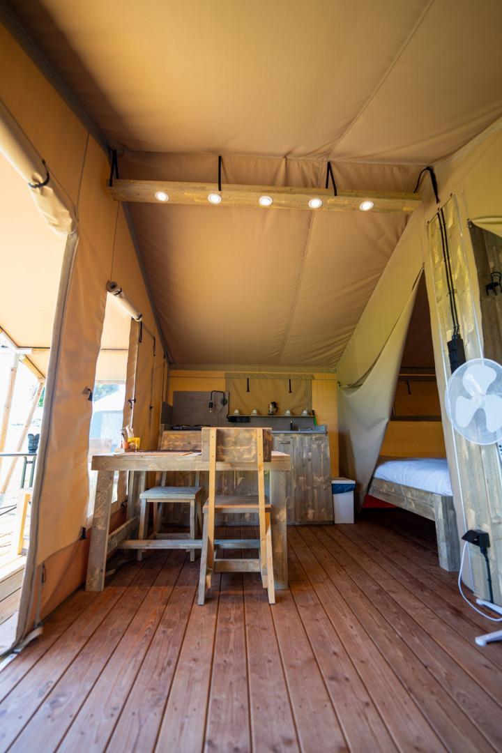 The Safari Lodge is the ideal accommodation to combine your vacation with originality and authenticity without having to sacrifice comfort. This accommodation has the look of a tent and canvas cabin and offers you a real escape during your vacation. The kitchen area is made of canvas and the bedrooms and bathroom made of wood (insulated from the cool in spring, from the heat in summer, and from noise too). In addition, it is located in an exotic setting, close to nature.