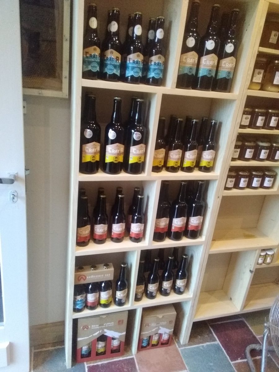 Honey from our own beehives, products derived from the hive (gingerbread, honey caramel, etc.) jams in a variety of flavors but always 100% fruit, walnut oil, cider vinegar from our own production, organic beer and lemonade.