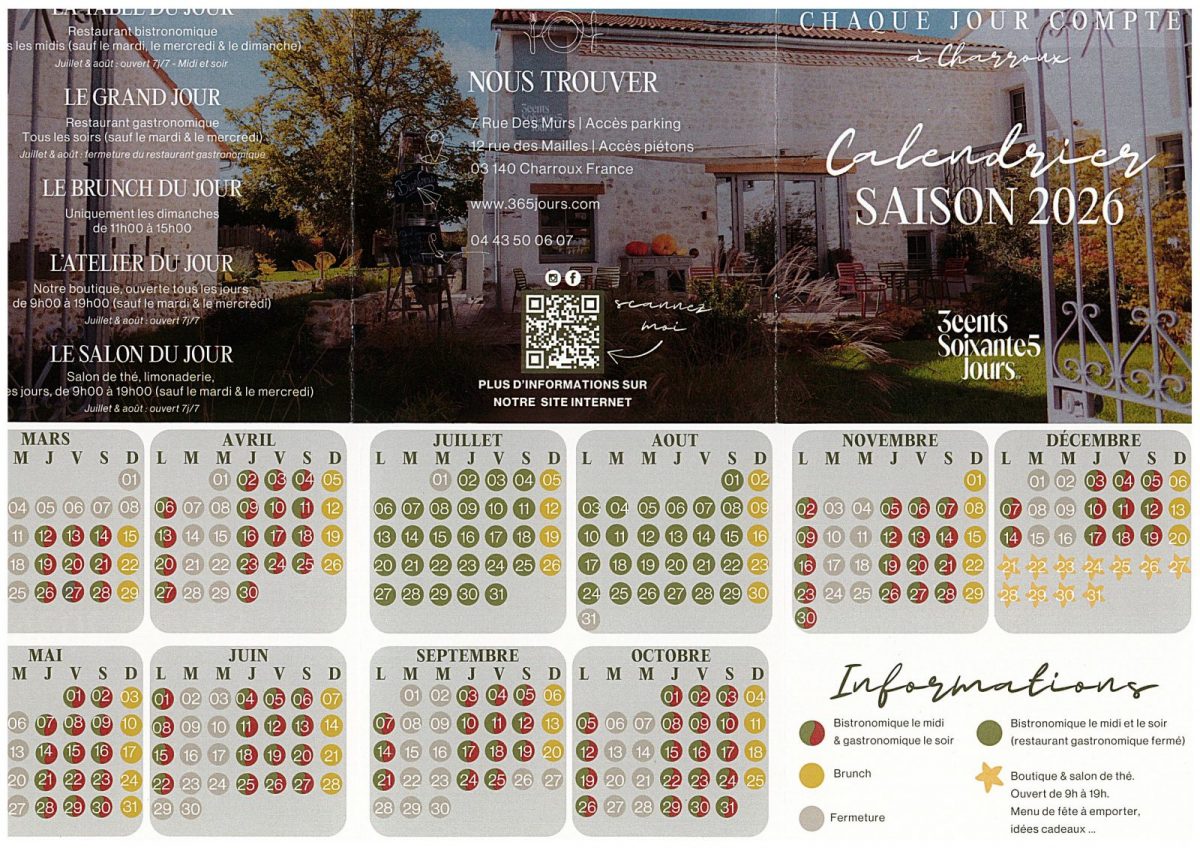 From 01/01 to 31/12/2026 closed on Monday, Thursday, Friday and weekends.